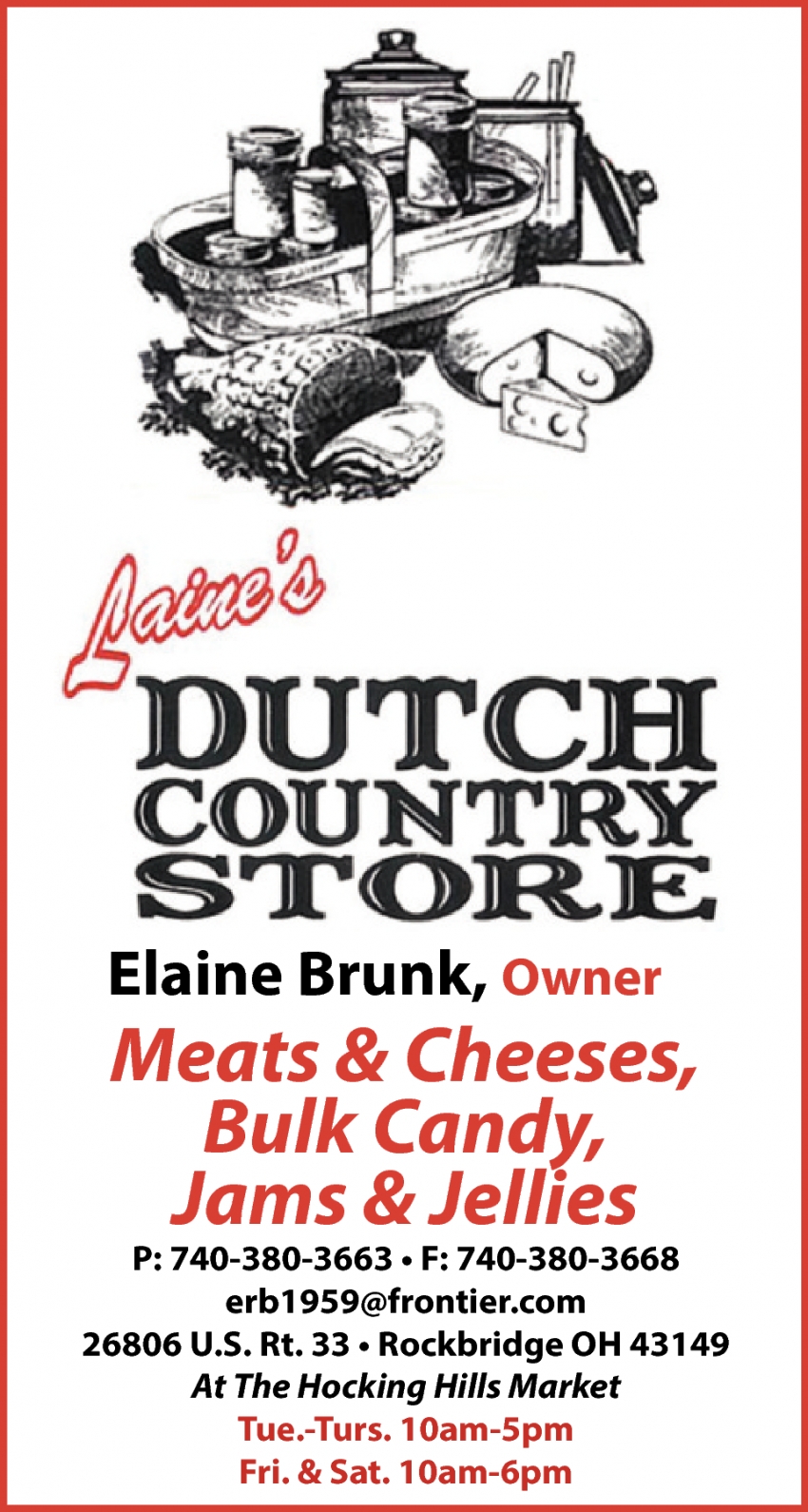 Ads for Laine's Dutch Country Store in Logan, OH
