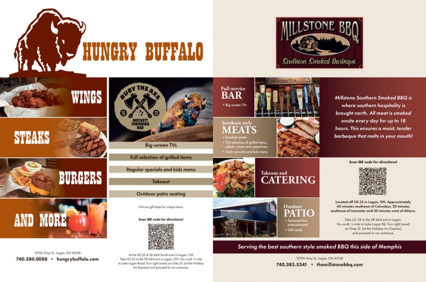 Ads for Millstone BBQ Southern Smoked Barbeque in Logan, OH