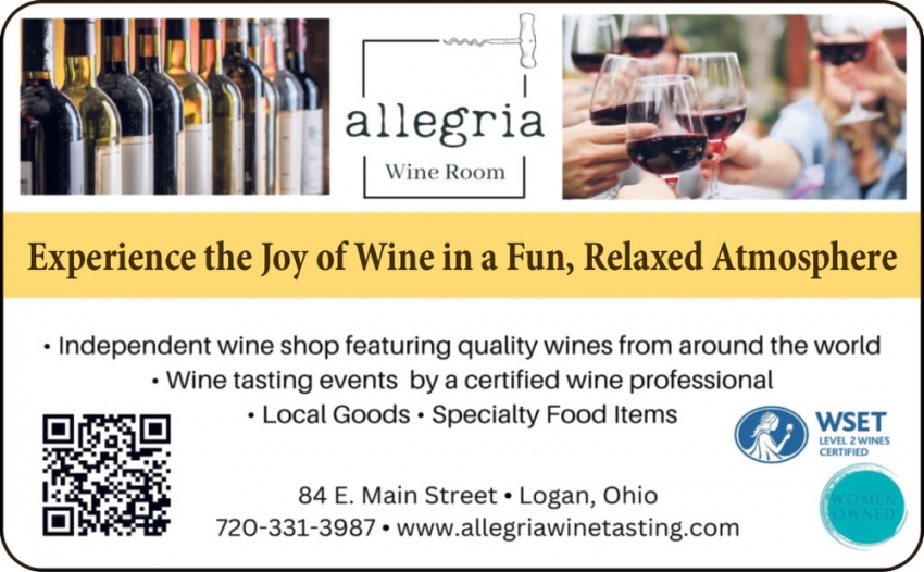 Ads for Allegria Wine Room in Logan, OH