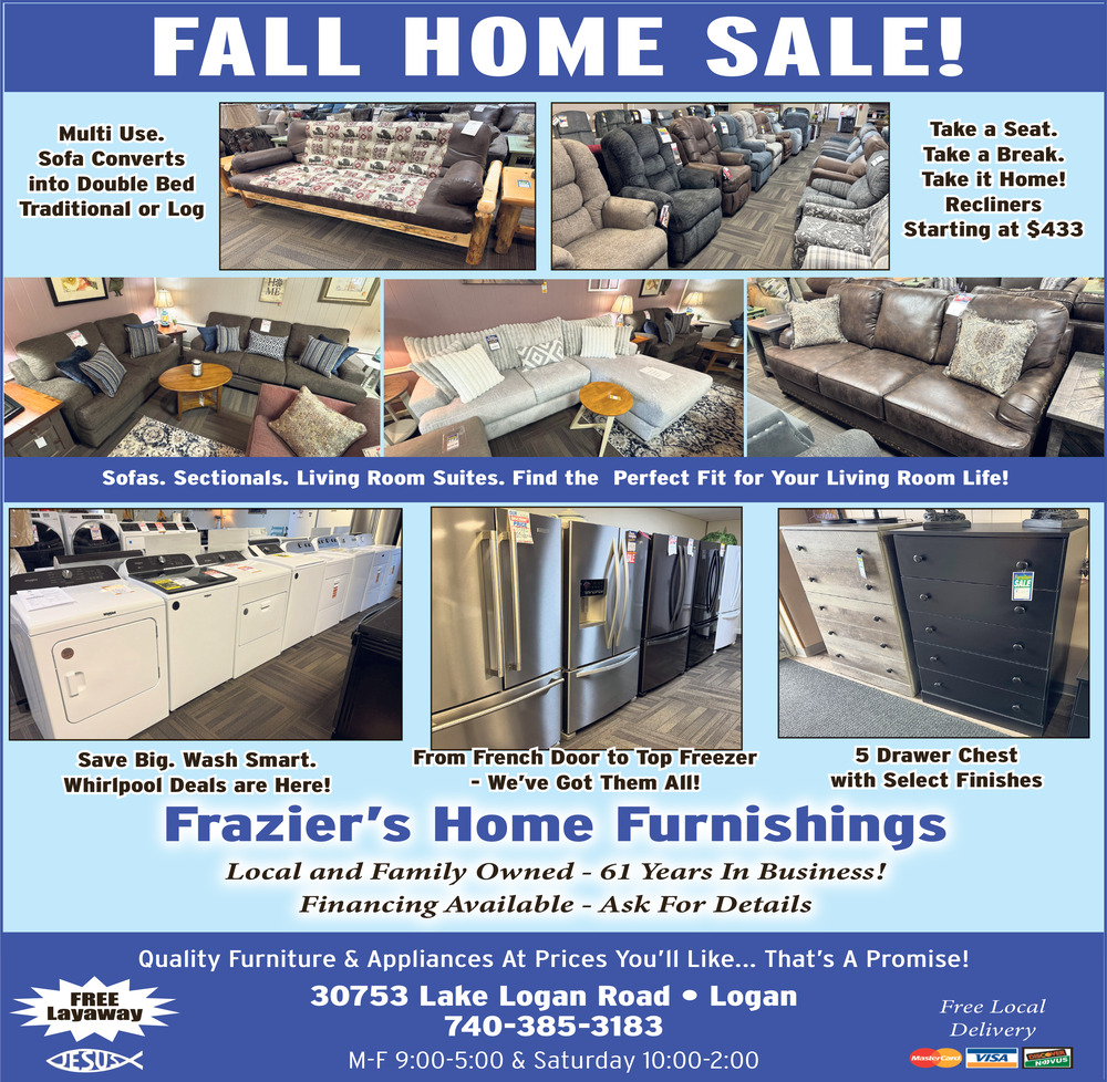 Oct 04, 2025. Frazier's Home Furnishings Home Furnishing Ads from The Logan Daily News