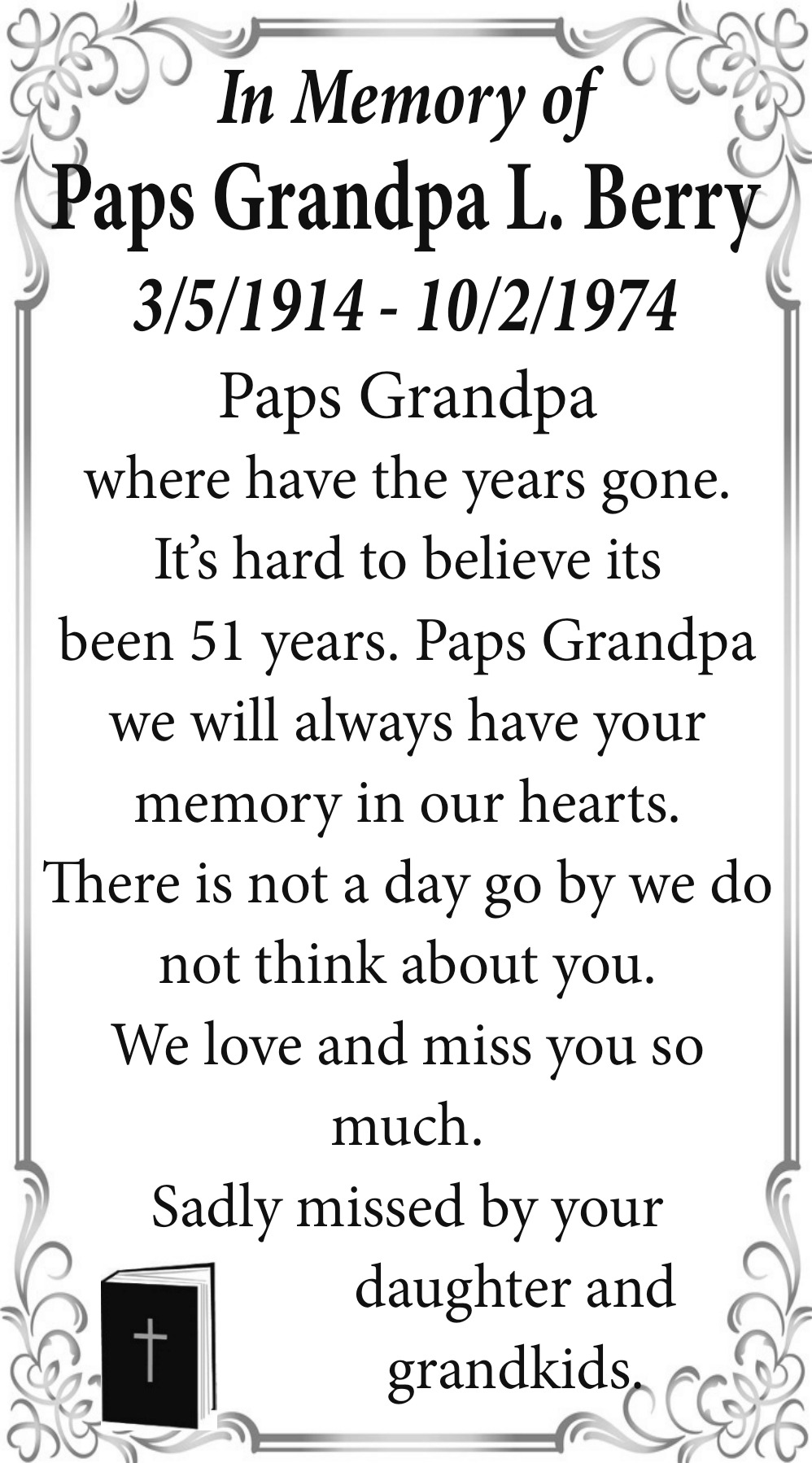 In Memory of Paps Granpa L. Berry