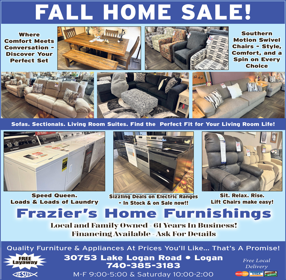 Oct 14, 2025. Frazier's Home Furnishings Home Furnishing Ads from The Logan Daily News