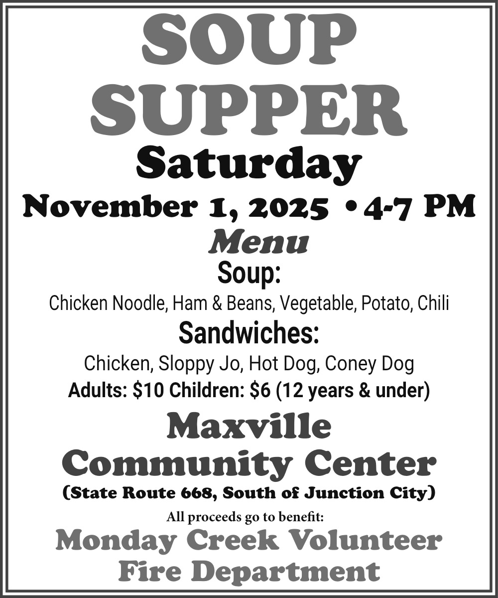Oct 22, 2025. Monday Creek Fire Department Events Ads from The Logan Daily News
