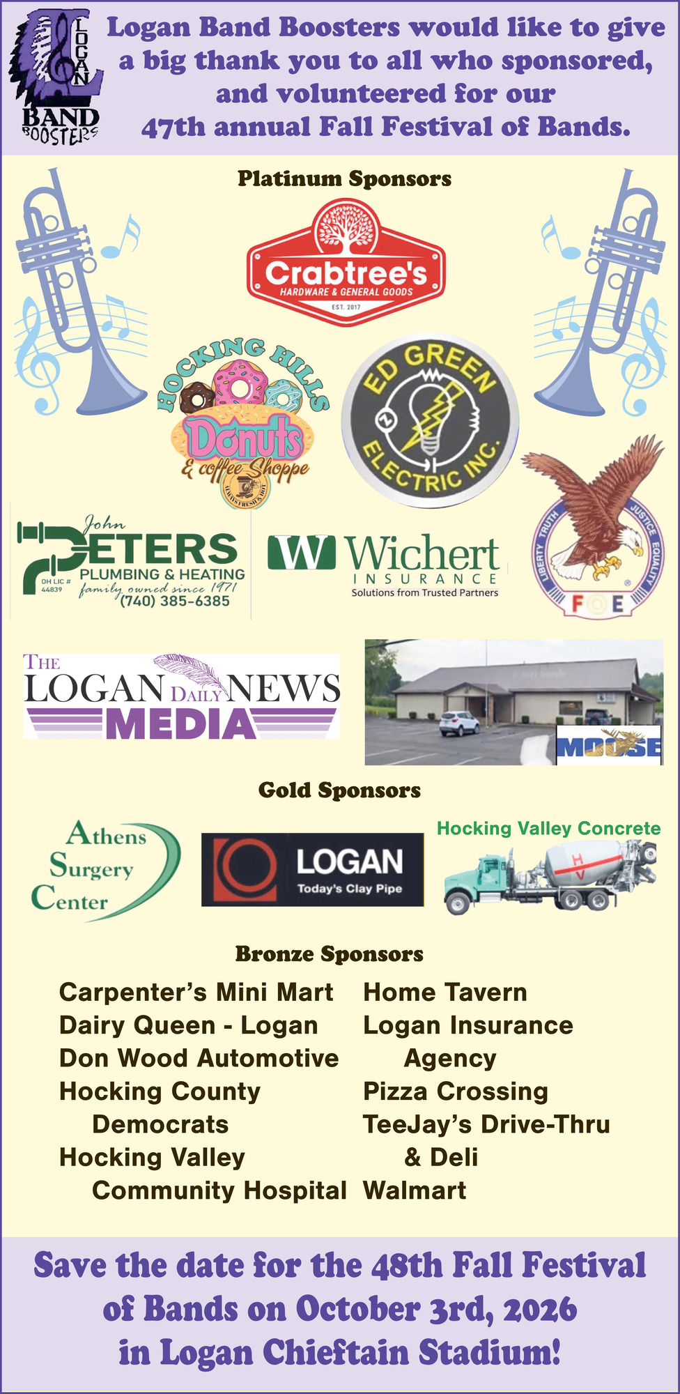 Nov 08, 2025. Fall Festival of Bands Festivals Ads from The Logan Daily News