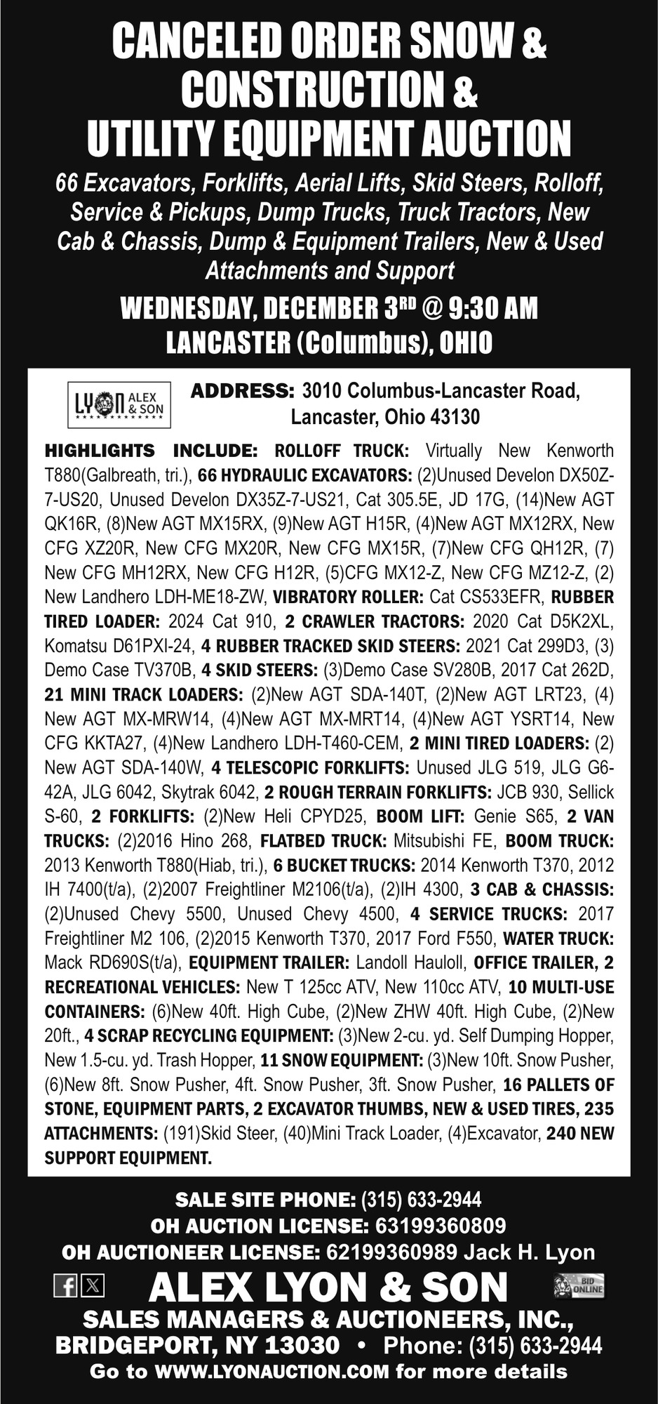 Nov 29, 2025. Alex Lyon & Son Sales Managers & Auctioneer, Inc Auctions Ads from The Logan Daily News