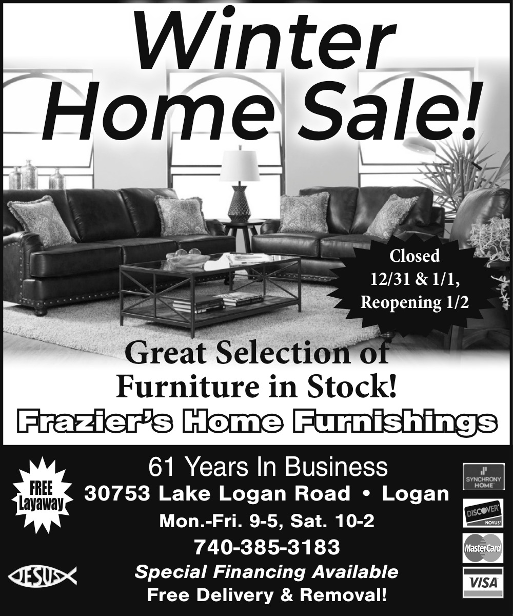 Dec 27, 2025. Frazier's Home Furnishings Home Furnishing Ads from The Logan Daily News