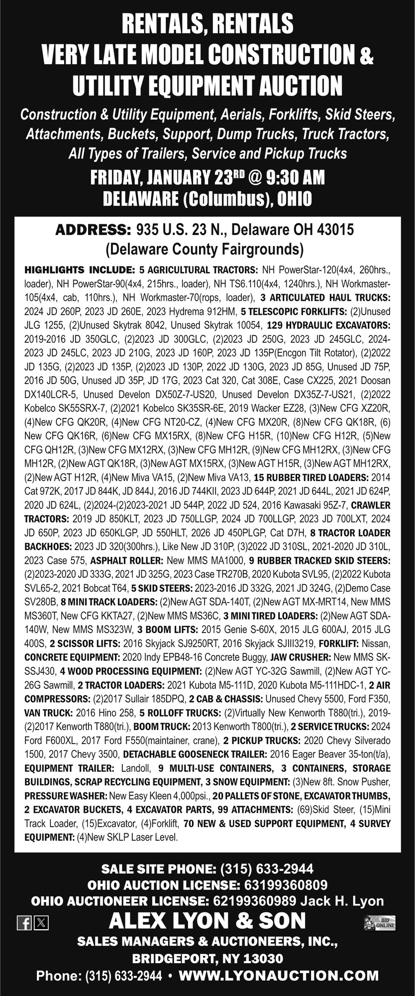 Jan 10, 2026. Alex Lyon & Son Sales Managers & Auctioneer, Inc Auctions Ads from The Logan Daily News