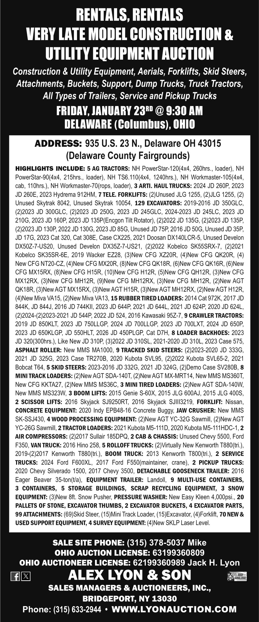 Jan 17, 2026. Alex Lyon & Son Sales Managers & Auctioneer, Inc Auctions Ads from The Logan Daily News