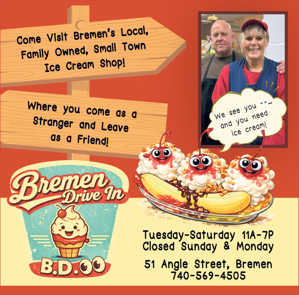 Apr 11, 2026. Bremen Drive In Ice Cream Shop Ads from The Logan Daily News
