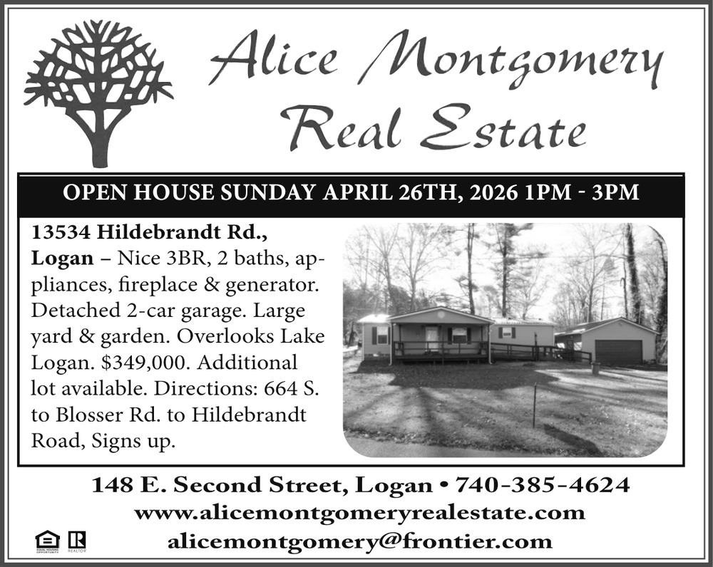 Apr 25, 2026. Alice Montgomery Real Estate Inc. Real Estate Ads from The Logan Daily News